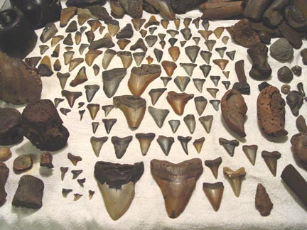About 120 Megalodon teeth collected by Jerry during one dive at our "secret" spot. After the current got swift at this site, we headed up river some to another site that is known to contain artifacts.