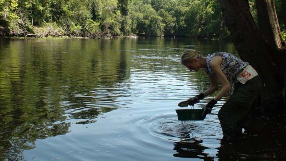 Robert and I geared up. I planned to show Robert one of the many fossil beds in the Santa Fe River. Marcy was going to dig at the river bank for fossils and Sandy was filming everything. We made a great video of the trip that will be finished later. I got about an hour of great underwater video for the film. |