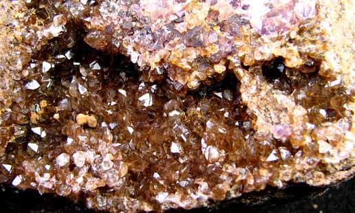 Inclusions in drusy smoky quartz from the Eureka Mine and Columbia Mine sometimes display interesting fluorescence.